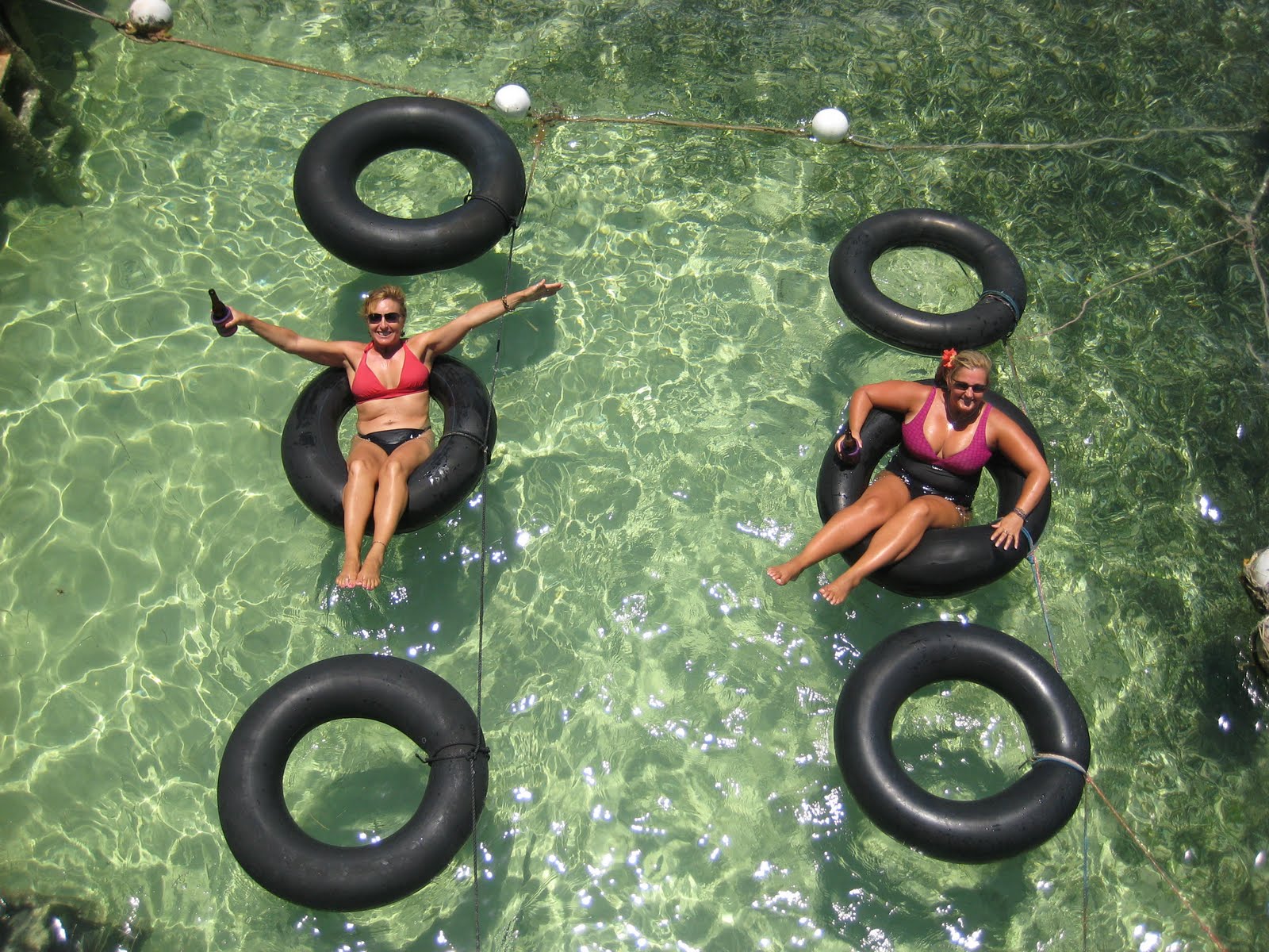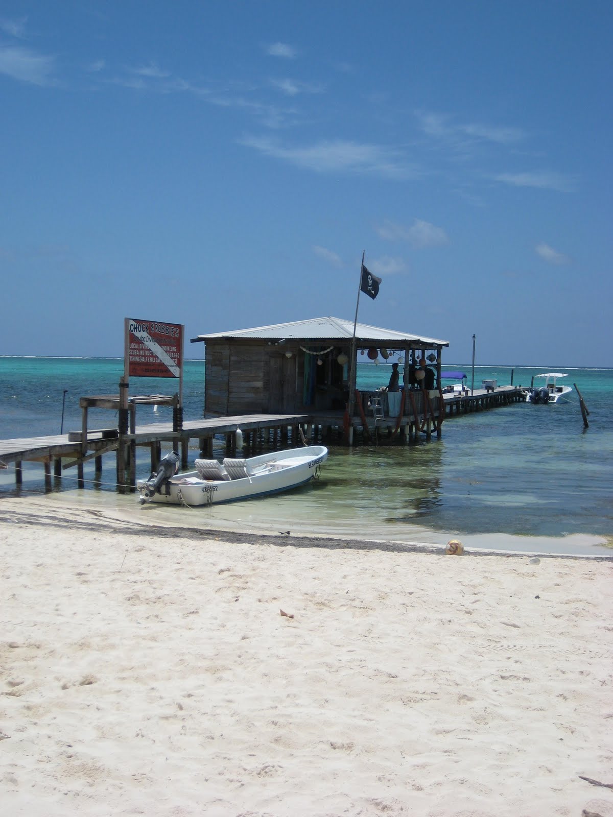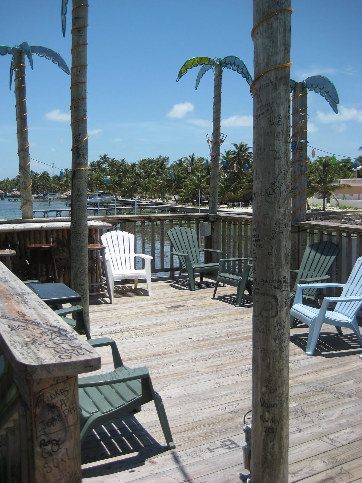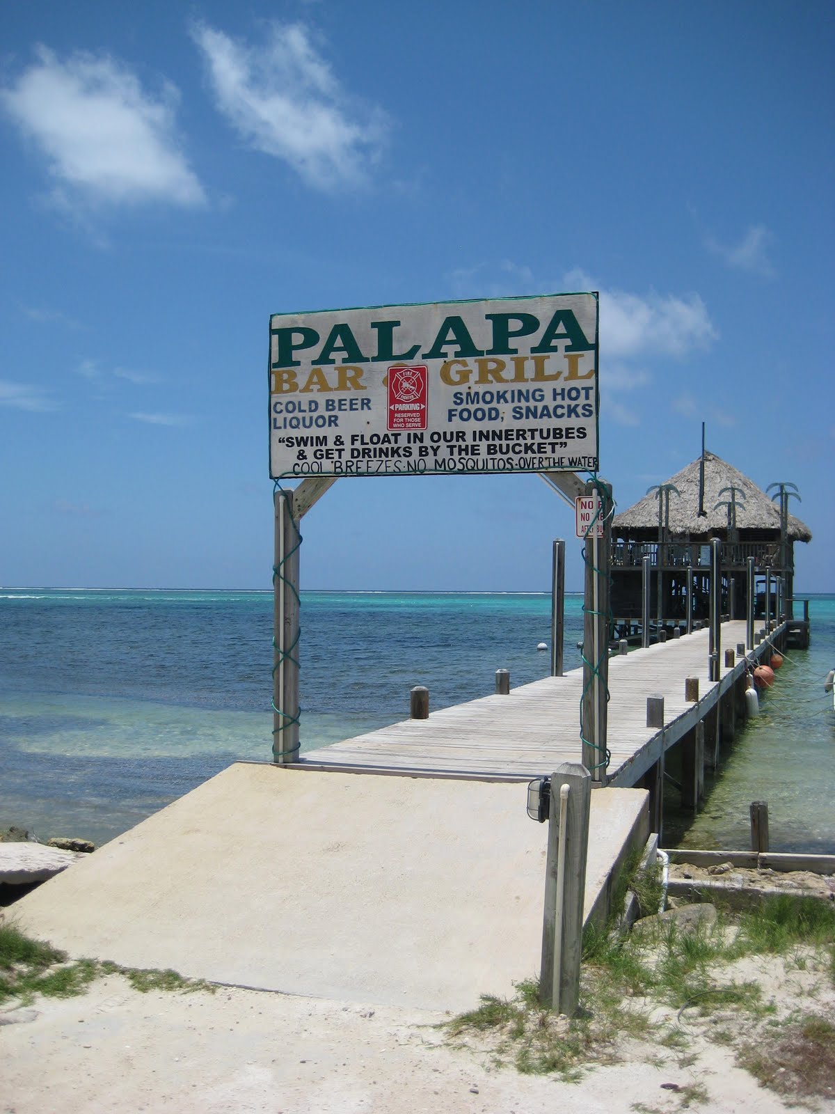 A little less than a mile north of the bridge (and a very pretty ride) is an island institution. The Palapa Bar. It is a bar you definitely want to visit when you come to this island no matter where you stay. It’s a cool two story palapa bar out on the water with some great food (from DEEP FRIED BACON to a $50bzd 3/4lb lobster dinner), a great sunning deck, the most beautiful view of the reef and a very cool place to enjoy your beers and hang out for the day. They will actually lower your drinks down in a bucket while you float on inner tubes. Beat that. I dare you to even try.