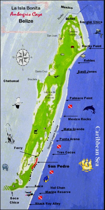 Yesterday was a beautiful, hot day and perfect to drive north of the bridge on Ambergris Caye. Something that I haven’t done in years. I have been making a huge mistake. Let me back up a bit…Ambergris Caye is the largest caye in Belize, is 25 miles in length and has a “cut” with a connecting bridge. The main town, San Pedro is south of the bridge (on the much smaller part of the island). The “suburbs” and large resorts are to the north and even farther north is a large nature reserve, Bacalar Chico. (See a vague map of the island at the bottom of this blog…the actual town is in red and I live 1.25 south of that).