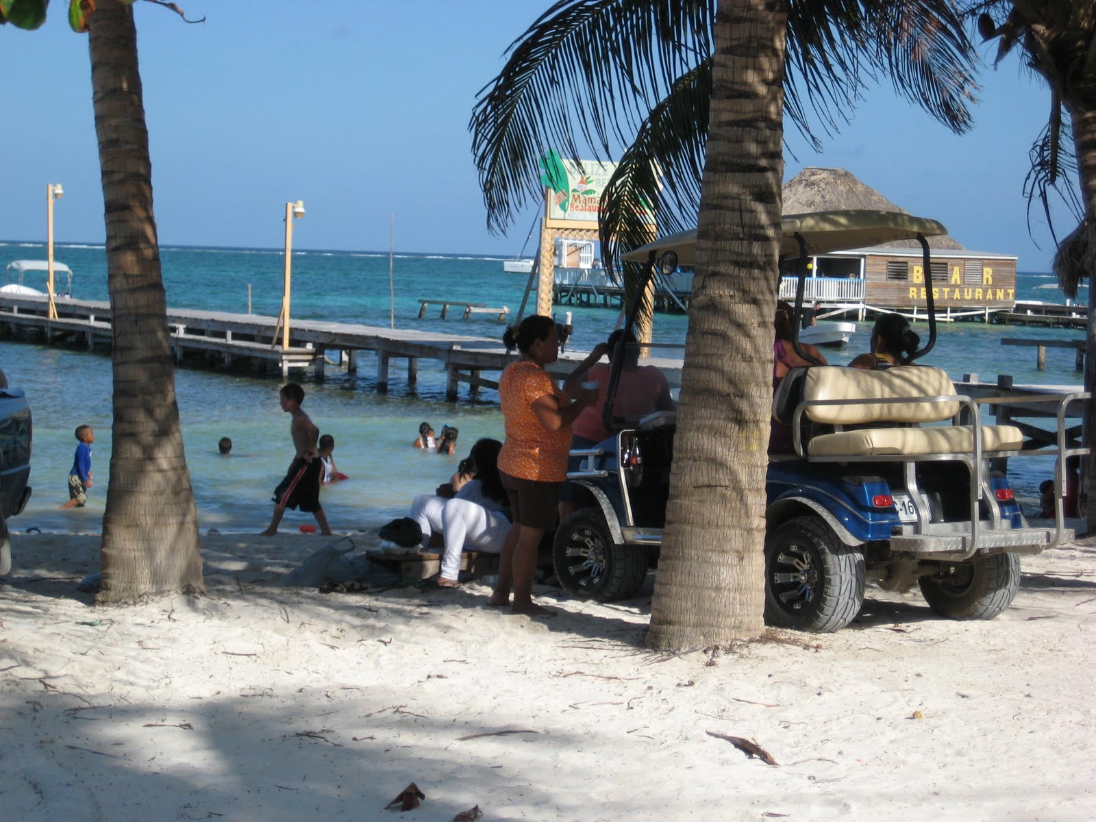 There is a $10bzd toll for a round trip golf cart trip over the bridge. We paid at the little booth and headed over the crossing, a bridge that is relatively new. Just 5 or 6 years ago, you crossed the cut in a hand-pull ferry.