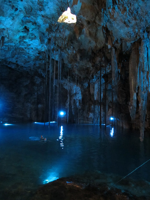 We then packed back into the car. Two more cenotes are right outside of town…about 2 miles away. Cenote Dzitnup or Xkeken and Cenote Samulla. They are doing some SERIOUS build up for these spots right now. HUGE tour bus parking lots, lots of bathroom facilities. Lots of people selling things, lots of annoying hustler kids that should be in school. Kids that get angry when you don´t tip them for ¨watching the car¨. Each cenote´s entrance fee is $52 pesos. They were cool (stop by in the morning when the light is shining through the hole)…but I would imagine that very quickly they are going to be overwhelmed with people. Plus, the multi-colored light show seems a bit over the top. I could have skipped this stop.
