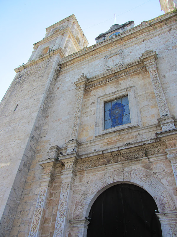 There is a beautiful cathedral, a proper town square (the Spanish really knew their architecture) and some good shopping. The town seems to be known for pork rinds (I ate a bunch), wedding and quinceria dresses (the Mexican equivalent of a sweet 15 birthday party) and Jesus-like leather sandals. I almost bought a pair of the sandals but apparently size 9 US is too mucho grande. Not totally surprising. The mainly Mayan population in this area is mucho tiny.