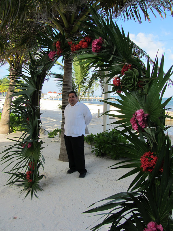 But let’s back up. We pulled up to park at the hotel/resort next door to the wedding site…at Carribean Villas…and ANOTHER wedding was happening. This hotel is a fantastic spot to be married. A very cute palapa bar and fantastic beach front location, the wedding was just getting started.