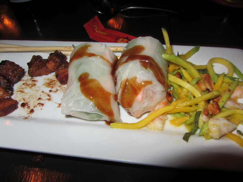 The first course was classic spring rolls, a tangy, tasty green mango salad (finally! green mango made in a way that tastes good!) and a divine barbecued pork. It was sweet…almost like pig candy. I could have eaten a bucket of this stuff. (See? I could not take the picture without eating some.)