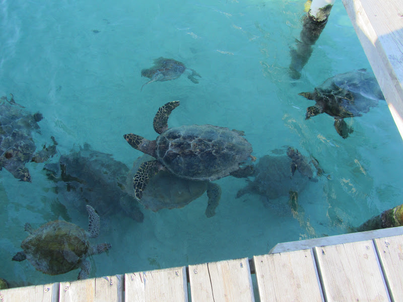 The first thing you see when you get on the dock are the huge pens with large turtles, sharks and fish of all kinds.