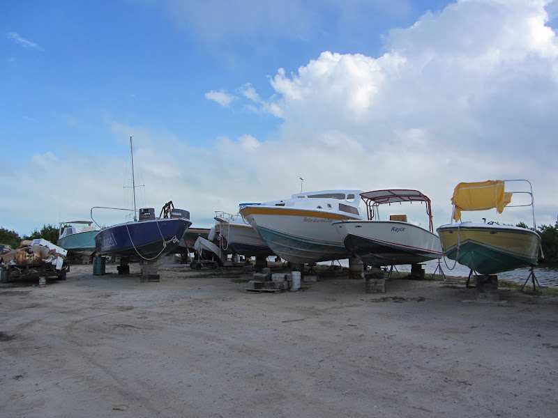 I swung into Captain Shark’s Boatyard on the backside of the island. They were busy preparing space for boats to move in this afternoon. Away from the waves of the ocean.