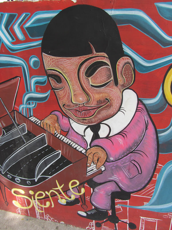 Across the almost completely dried up river (September is the heart of the dry season in Colombia), is the Granada neighborhood and it’s undergoing quite a resurgence. There is plenty of construction going on along the tree lined streets. But there are also lots of shops and great restaurants. They are even raising money for a Salsa Museum in the area and these great wall paintings were just outside.