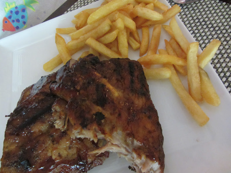 You can eat inside in the A/C or on the patio and we watched plate after plate taken out by the pool…