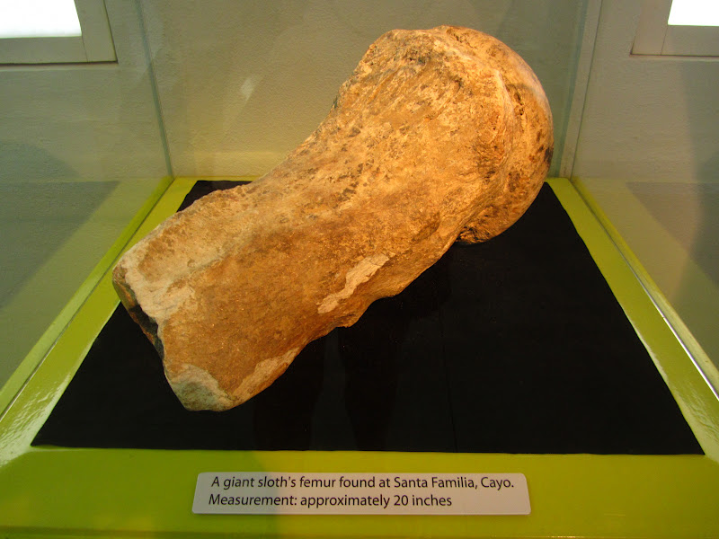 There was even a piece of a femur bone found in Cayo from the giant sloth. On earth about 5 million years ago, this huge mammal stood over 20 feet tall. Pretty cool.