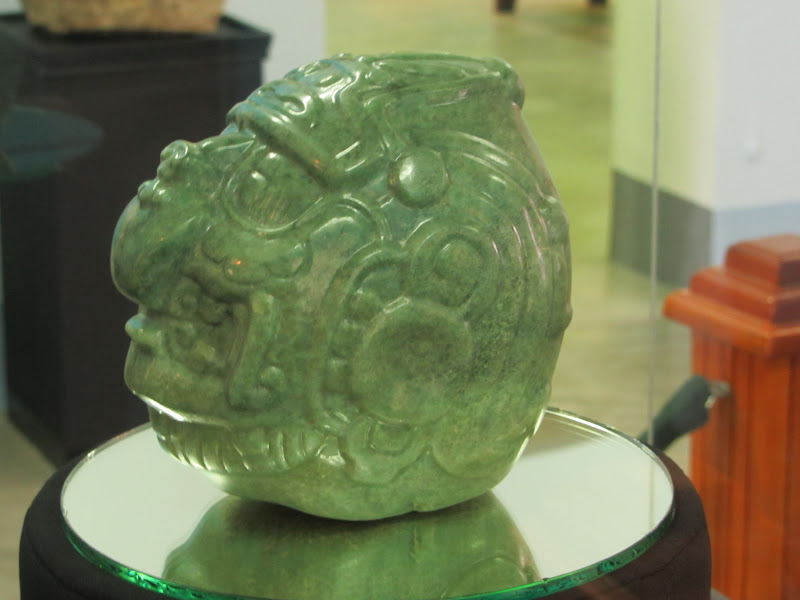 had to take a trip to Belize City.The Mayan site of Altun Ha is located 31 miles north of Belize City and there, in 1968, an archaeologist from Canada made an amazing discovery. The Jade Head along with forty other objects, had been placed within a large tomb that was located below the stairs in one of the temples. The elderly adult male, probably an important ruler of the site during his lifetime, was buried with this jewel around 600 AD. And remained untouched for over 1300 years.This one day exhibition and opening of the second floor of the museum was well worth traveling to Belize City for…